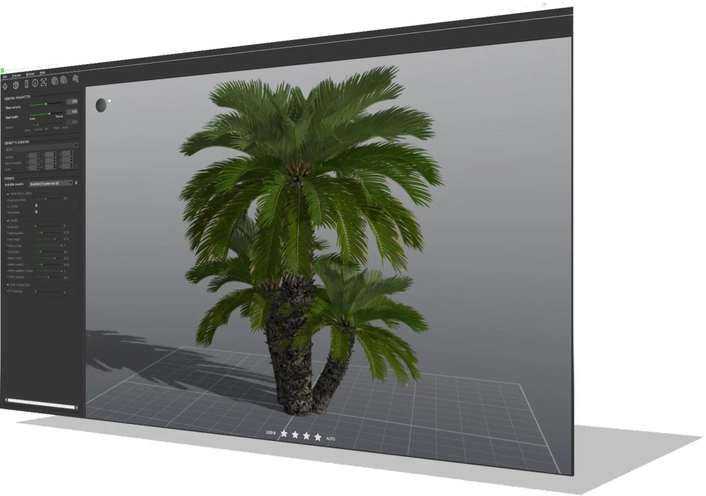 In addition to individual parameters governing the shape of the plant, users can adjust global controls like plant age, health, and seasonality, or set mesh resolution and wind intensity in animations. . Supported export formats include OBJ, FBX, Alembic, 3DS, C4D, and LWO, and there are export presets suitable for a range of host applications, including common DCC tools and Unity game engines. and UE4.