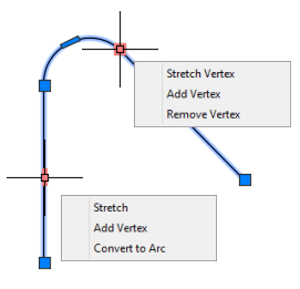 Look for these powerful grips in lines, plines, arcs, elliptical arcs, dimensions and multileaders. 3D faces, edges, and vertices also have them. Just hover over a grip to access numerous relevant options.
