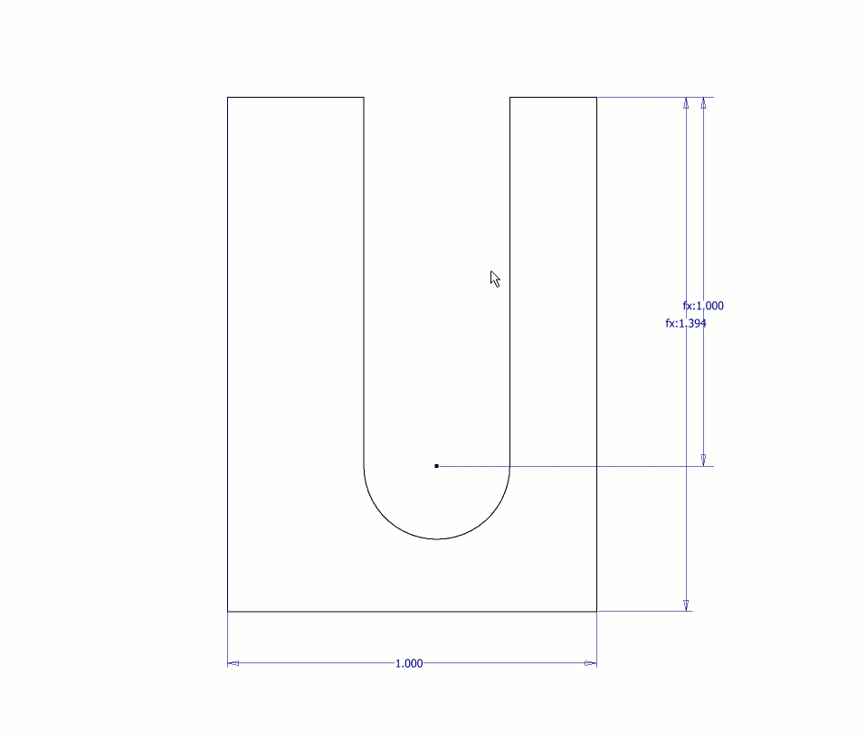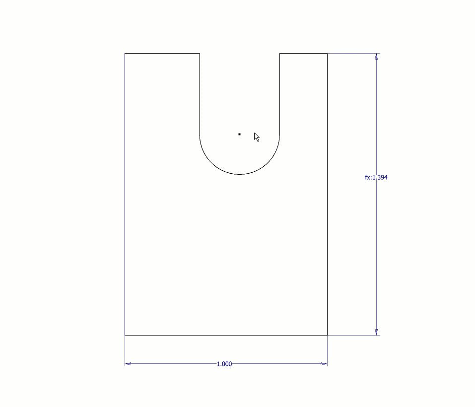 I try to do as much as I can with constraints and dimensions and add construction geometry only if I can’t get what I needed from constrains and dimensions. Here is a nifty little trick I use from time to time that lets me do just that. In the example below I have something that resembles a fork shape and I want all three sections to be equal in width (two sides and the middle gap) even when changing the overall width of the sketch. You could use construction geometry to do this and that works, however, you can also use Driven Dimensions to do this and it will make a more robust sketch. In this example I dimension one the edges, select the dimension and right-click on it to turn it to a driven dimension. Now I place dimensions for the other two sections and select the reference dimension to make them equal to the reference dimension. Once all three of these dimensions place it will make them all equal and the lower width dimension will control their overall size while keeping them all equal widths.