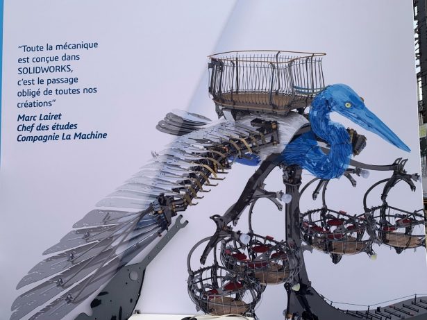 • But let’s go back for a moment to the Great Blue Heron, this futuristic animal, this extraordinary machine, which proved to be as fascinating as the emblematic elephant, yet the undisputed star of this spectacular event. The great blue heron was developed in particular through SOLIDWORKS simulation and design tools and on the 3DEXPERIENCE platform.