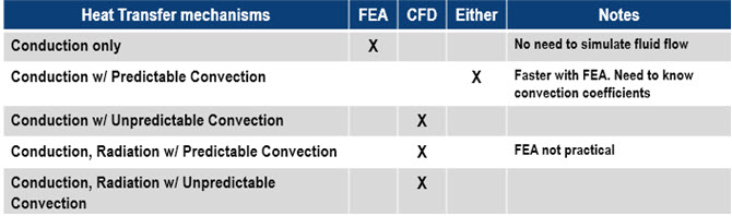 Now that you know that FEA is as easy to use as CFD, do you know when to use either? We will easily answer this question. Which tool to use depends on the heat transfer mechanisms taking place in the components you are designing: conduction, convection, radiation, or most often a combination of all three. Moreover, the level of precision that you are willing to accept will also influence your decision.